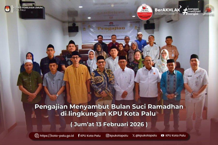 Palu, kota-palu.kpu.go.id – Mengusung tema “Dengan Semangat Iman, Kita Sambut Ramadhan 1447 H”, kegiatan pengajian ini menjadi tradisi KPU termasuk KPU Kota Palu dalam menyambut hadirnya Bulan Suci Ramadhan. Hikmah pengajian disampaikan oleh Bapak H. Muhammad Zain, S.Pd.I, bertempat di Ruang RPP Kantor KPU Kota Palu, Jumat 13/02/2026.