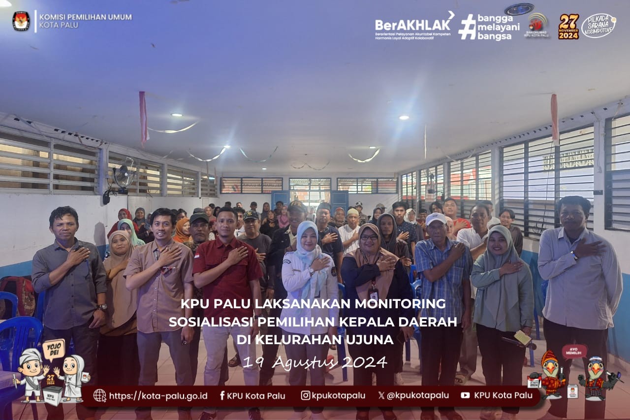 Palu, kota-palu.kpu.go.id - Komisi Pemilihan Umum (KPU) Kota Palu melaksanakan kegiatan monitoring sosialisasi untuk segmen masyarakat umum terkait Pemilihan Gubernur dan Wakil Gubernur Provinsi Sulawesi Tengah serta Wali Kota dan Wakil Wali Kota Palu Tahun 2024. Acara ini berlangsung di Baruga Aula Kelurahan Ujuna, Kecamatan Palu Barat, pada hari Senin, 19 Agustus 2024. Kegiatan ini menghadirkan berbagai lapisan masyarakat, termasuk RW, RT, Babinsa, Satgas Pancasila, warga sekitar, dan Pantarlih. Mufidah, Kepala Sub Bagian Keuangan, Umum, dan Logistik KPU Kota Palu, bersama staf terkait, juga turut hadir dalam acara ini. Panitia Pemungutan Suara (PPS) Kelurahan Ujuna membuka acara dengan menjelaskan bahwa sosialisasi ini bertujuan untuk memperkenalkan proses pemilihan kepala daerah serentak yang akan dilaksanakan pada tanggal 27 November 2024 kepada masyarakat umum. Panitia Pemilihan Kecamatan (PPK) juga turut berperan dalam kegiatan ini. Anggota PPK Palu Barat, Eka, mempraktikkan cara mengakses link cekdptonline untuk memeriksa apakah nama sudah terdaftar dalam Daftar Pemilih Sementara (DPS) melalui handphone masing-masing. Eka menghimbau agar masyarakat yang hadir juga mengajak keluarga dan teman-teman mereka untuk aktif mengecek status pendaftaran sebagai pemilih. Ketua PPK Palu Barat, Halid, menjelaskan bahwa baru-baru ini KPU Kota Palu telah menetapkan Daftar Pemilih Sementara (DPS), yang telah ditempel di beberapa titik di Kelurahan Ujuna. Ia menambahkan bahwa dengan mengakses cekdptonline, masyarakat dapat mengetahui lokasi Tempat Pemungutan Suara (TPS) dan memastikan bahwa penempatan TPS sesuai dengan lokasi rumah mereka. Halid juga mengingatkan bahwa jika masyarakat belum terdaftar sebagai pemilih, hal ini tidak berarti mereka tidak dapat memilih. Ia menghimbau agar mereka segera melapor ke PPS di kelurahan, PPK di kecamatan, atau langsung ke KPU Kota Palu untuk memastikan mereka terdaftar dalam daftar pemilih pemilihan kepala daerah serentak tahun 2024 mendatang. Acara sosialisasi diakhiri dengan sesi foto bersama, menandai keberhasilan kegiatan dan sebagai bentuk apresiasi kepada semua pihak yang terlibat serta masyarakat yang hadir. KPU Kota Palu berharap sosialisasi ini dapat meningkatkan kesadaran masyarakat tentang pentingnya partisipasi dalam pemilihan umum yang akan datang. [Humas KPU Kota Palu, cml/ft cml/ed Iz]