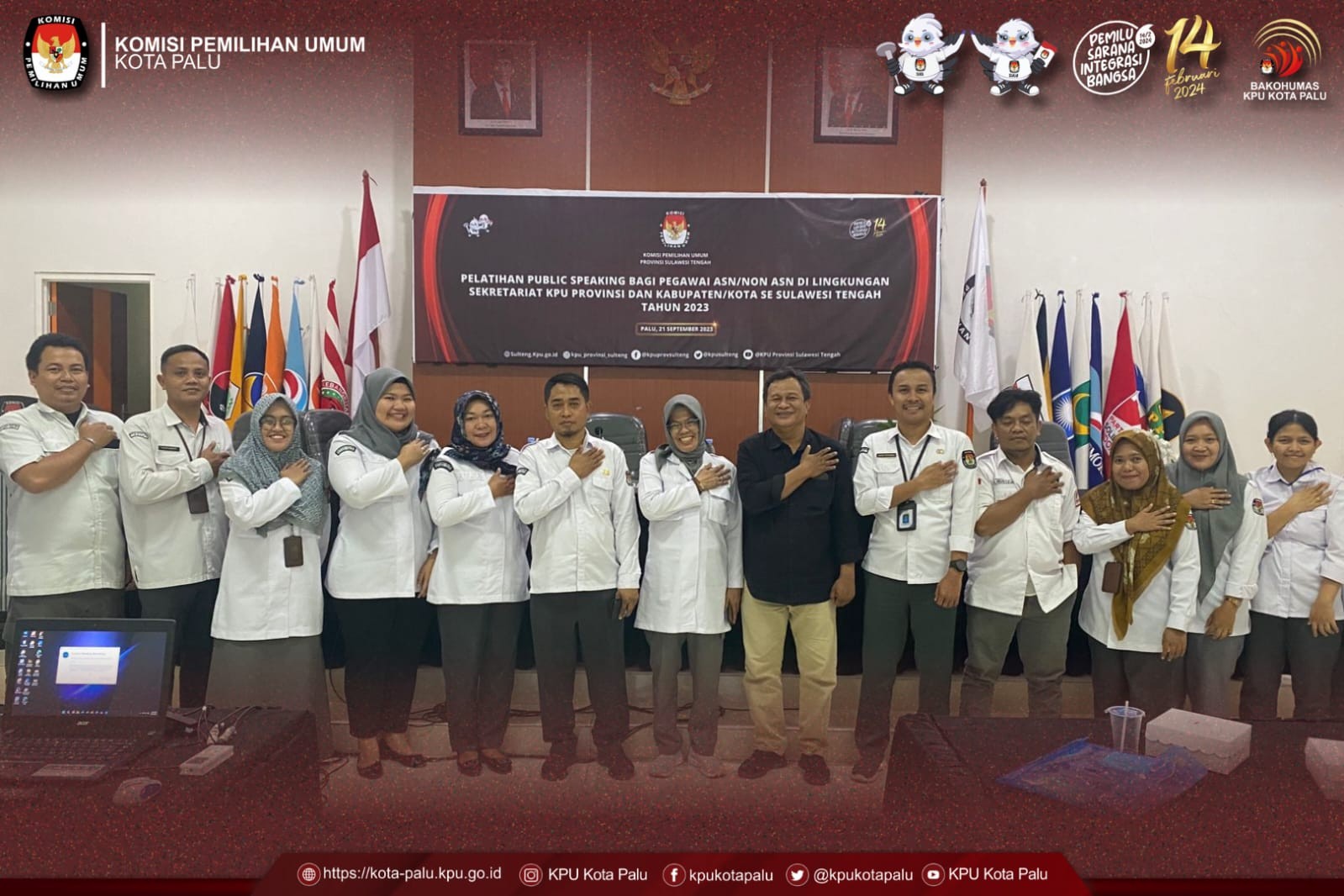 Palu,kota-palu.kpu.go.id — Memastikan penyebaran informasi pemilihan umum (Pemilu) 2024 kepada publik secara efektif dan benar, Komisi Pemilihan Umum (KPU) Provinsi Sulawesi Tengah mengadakan pelatihan public speaking khusus untuk Pegawai ASN/Non ASN di Sekretariat KPU se-Sulawesi Tengah. Pelatihan ini dilakukan secara kombinasi, melalui metode luring (offline) dan daring (online), dan berlangsung di aula kantor KPU Provinsi Sulawesi Tengah pada Kamis, 21 September 2023. Pelatihan ini resmi dibuka oleh DR.Nisbah, M.Si, Ketua Divisi Sosialisasi, Pendidikan Pemilih, Partisipasi Masyarakat, dan Sumber Daya Manusia KPU Sulawesi Tengah. Dalam pidatonya, Nisbah menekankan bahwa tujuan pelatihan ini adalah untuk mempersiapkan pegawai di lingkungan KPU Sulawesi Tengah dalam menyampaikan informasi tahapan pemilihan kepada publik, peserta pemilu, dan stakeholder terkait. “Kami ingin memastikan bahwa setiap informasi yang disampaikan oleh pegawai KPU dapat diterima dengan baik oleh masyarakat. Pelatihan ini diharapkan dapat memperkuat kemampuan pegawai dalam public speaking, sehingga informasi mengenai tahapan dan pelaksanaan pemilu dapat disampaikan dengan jelas, akurat, dan sesuai dengan regulasi yang ada,” tutur Nisbah. Sebagai narasumber, Hary Aziz, dosen ilmu komunikasi dari salah satu universitas swasta di Kota Palu, membagikan wawasannya tentang seni beragam percakapan. Materi pelatihan menyoroti teknik-teknik percakapan yang efektif, baik dalam konteks perseorangan maupun kelompok. Selain pembahasan teori, peserta pelatihan juga diberi kesempatan untuk melakukan simulasi. Mereka diajak untuk mempraktikkan teknik-teknik yang telah dipelajari dalam menyampaikan informasi kepemiluan dengan cara yang baik dan benar. Pelatihan ini merupakan bagian dari upaya KPU Sulawesi Tengah dalam meningkatkan kualitas SDM pegawainya, khususnya dalam aspek komunikasi publik, menjelang pemilu 2024 yang akan datang. [Humas KPU Kota Palu cml/foto rd/ed Iz]